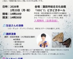 オカリナコンサートを行ないました!~さいたま市主催シニアユニバーシティ東浦和校様『新年懇親会』~ 2026年1月24日 ブログ こんにちは。講師の前田です。 1月22日、さいたま市地域中核施設プラザイーストにて、さいたま市主催のシニアユニバーシティ東浦和校第10期新年懇親会『オカリナ ア […] 続きを読む